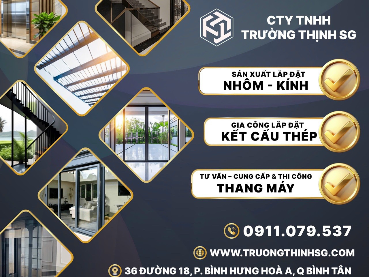Trường Thịnh SG , Công Ty TNHH Trường Thịnh SG đã khẳng định vị thế dẫn đầu trong ngành nhôm kính. Với sản phẩm và dịch vụ chủ lực là cửa nhôm xingfa, hệ vách nhôm kính lớn dành cho các toà nhà, cửa nhôm kính chống cháy, lan can kính, cầu thang kính. Với định hướng phát triển toàn quốc, hiện nay Trường Thịnh SG đã làm chủ được công nghệ sản xuất nhôm và kính cường lực chất lượng cao, giá thành phù hợp với mọi công trình lớn nhỏ, từ ứng dụng cho nhà dân tới các công trình toà nhà lớn.